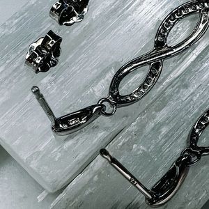 14k White Gold Diamond Infinity Earrings. I have a matching necklace available as well. Photos were taken under a bright light, color may vary slightly. Open to offers, no lowballing please.