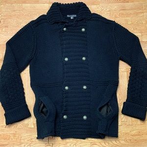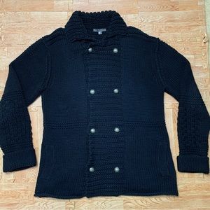 John Varvatos Pea-Coat Cardigan Navy Knit Mens Large Double-Breasted Rare EUC
