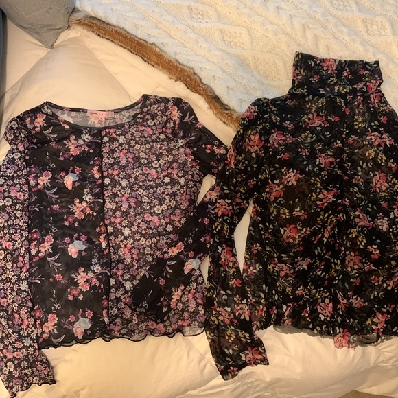 NWOT. Both black with floral prints. Great for layering or under overall’s etc.. INC brand and Crave Fame, from Macys. Both long sleeve with stretch. One is crew neck and the other is a mock turtle. 20” pit to pit. Questions welcome