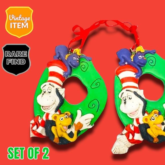 Dr. Seuss Cat in the Hat Vintage Jim Henson Christmas Holiday Ornaments. RARE! Great collectible ornaments for fans of this legendary property! FAST SHIPPING! B1