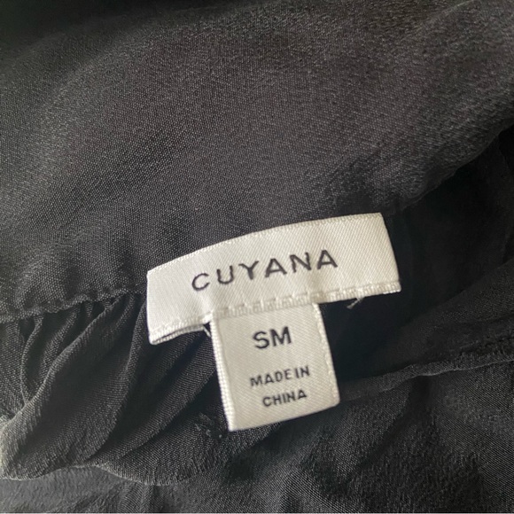 Cuyana 100% crepe silk black blouse w/ balloon sleeves