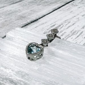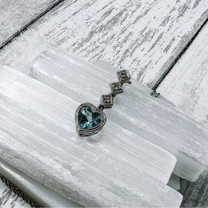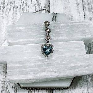 14k White Gold Aquamarine Heart & Diamond Necklace. The chain is 16 inches long. Photos were taken under a bright light, color may vary slightly. Open to offers, no lowballing please.