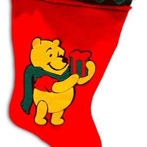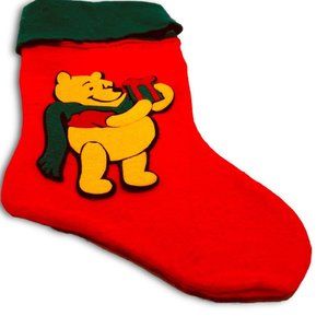 Disney Winnie The Pooh Bear Christmas Red Green Felt Stocking! Great collectible stocking for fans of this legendary property! FAST SHIPPING!