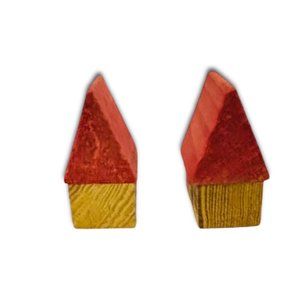 German made wood Red Roof Miniature buildings houses. 1 3/4 inches high. RARE! Great collectible miniatures. FAST SHIPPING!