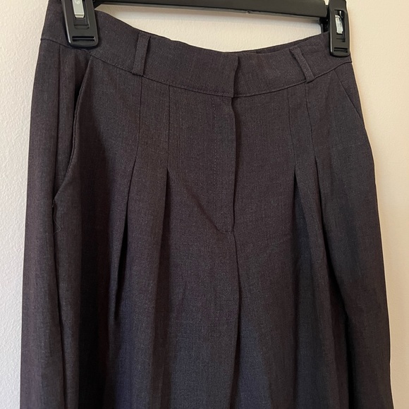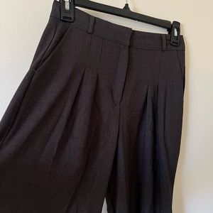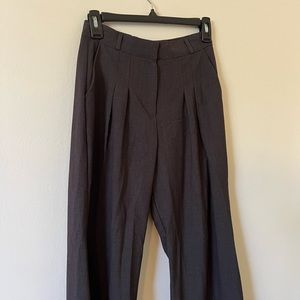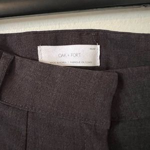 Oak + Fort high rise tailored wide leg pant with figure flattering pleating details, a functional fly and pockets.