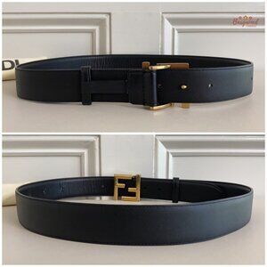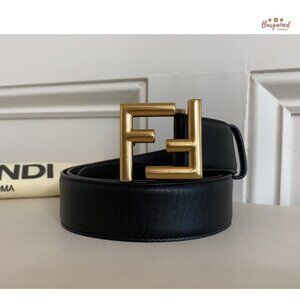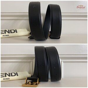 Authentic Fendi Black Calfskin Leather Gold FF Buckle Belt Size 85/34 - UNISEX