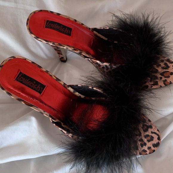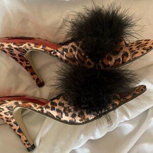 red cheetah print fur heels! heel size is small i would say ab 1-2 inches! size woman’s 7 but also fit 7-8❤️💋