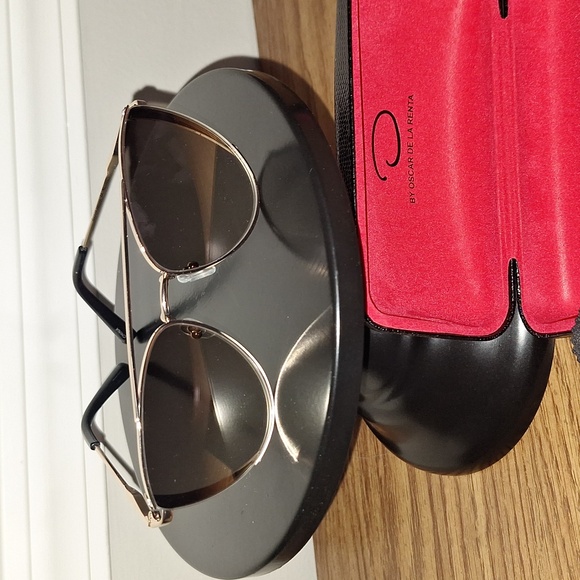 authentic oscar de la renta gold frame aviator sunglasses, only worn once I'm just not an aviator girl. No scratches or signs of wear comes with hard case and cloth, smoke-free home, feel free to make offers!