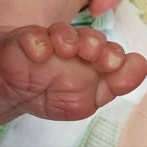 He has some paint rubbed off of the toes on his right foot. Otherwise he is like new and has only been displayed in my collection. Please look at the pictures carefully. This doll is sold as is. There are no returns. This doll is a one of a kind handmade collectible. So expect some flaws and imperfections. There is no COA for this doll.