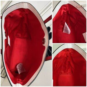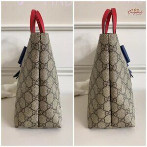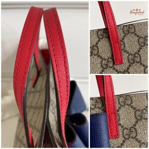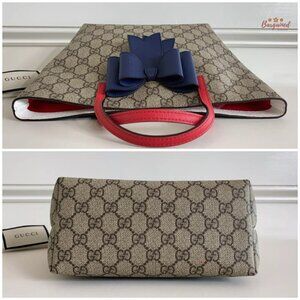 Authentic GUCCI Brown GG Supreme Monogram Red Leather Blue Bow Children's Tote