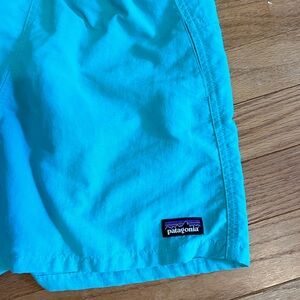 Teal Patagonia baggies 5 inch inseam. No flaws, lots of life left in them!