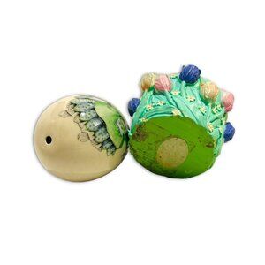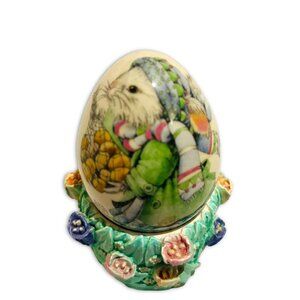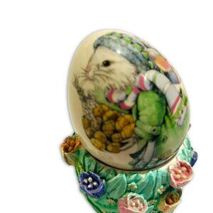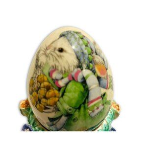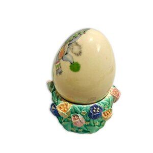 Vintage Porcelain Hand Painted Easter Bunny Egg & Painted Flower Egg Base. RARE!