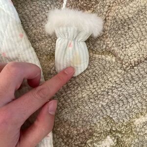 Everything pictured is what you will receive. The only thing that is not pleasant company is the rain jacket outfit. There is a small stain on the snow suit glove as pictured