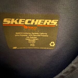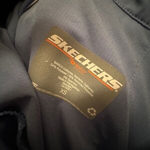 Skechers by Barco Ceil blue scrub top, pants, and jacket set. All are size XS. gently worn condition with no flaws. Top is v neck style , short sleeve, 3 pockets. 4 way stretch. Bottoms are drawstring waistband cargo style with 3 pockets. Jacket is button up style with 2 pockets. polyester, recycled polyester and spandex material. Loved this set just haven’t been reaching for these as much and ready for something new.