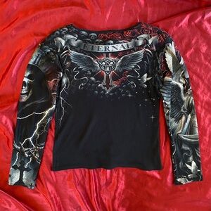 Goth Long Sleeve Skull Skulls Emo Scemo Romantic Goth Catholic Horror Horror Game Protagonist Rockstar Gf Nu Metal Metalhead Vampire Alternative Vampy Whimsigoth Lip Service Vive Maria Affliction Cyber Grunge Cybergoth Rivethead Maximalist Visual Kei Lolita Mcbling Y2K