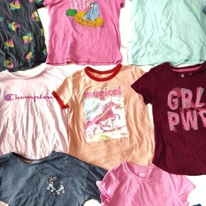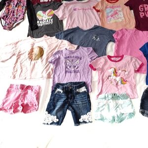 I have a bunch of Girl's clothes. 14 short sleeve T-shirts, 2 blouse/dress shirts, 4 pairs of shorts, 1 bathing suit, 1 romper. All sizes 6XS, 7/8 and 8/10. All are lightly used and in great shape. 22 items total included. All from a smoke free, pet free home.
