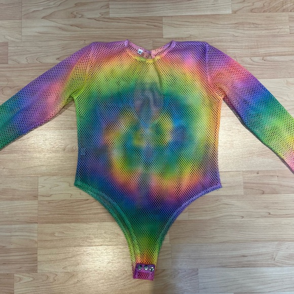 Rainbow Mesh Bodysuit, size small 🍭 great condition I don’t think I ever actually wore this. Buttons have a few scuffs on them from storage but great condition other than that. No brand tag but I remember it is either from iheartraves or dollskill. Purchased in 2017 or 2018.