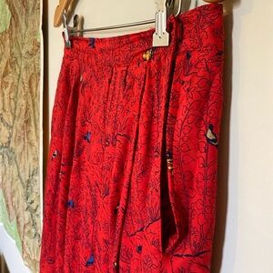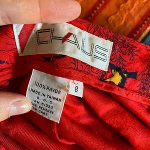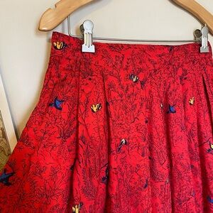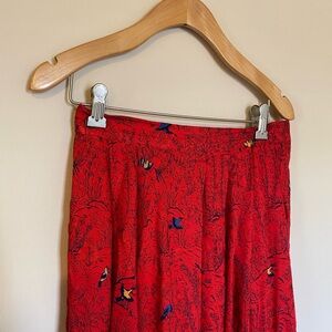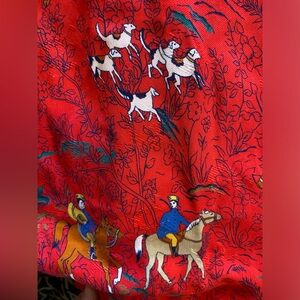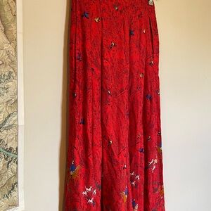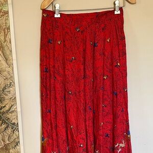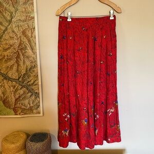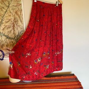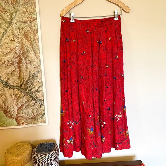 Vintage Red Maxi Skirt with Hunting Scene