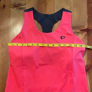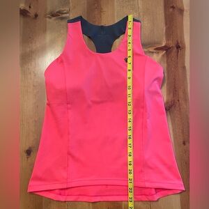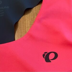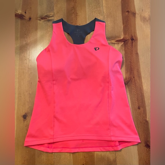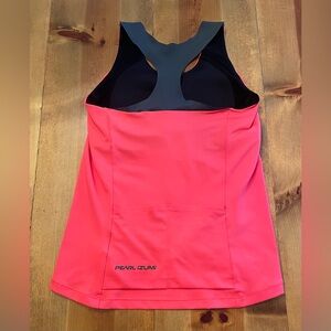 Symphony Tank by Pearl Izumi. Size M, see photos for measurement. Hot pink color with charcoal gray detailing. Exceptional pre owned condition: absolutely no signs of wear. Features shelf bra with light padding. Two open pockets on back, perfect for on the go storage! Racerback design and lightweight material makes for a perfect athletic tank!