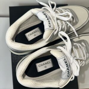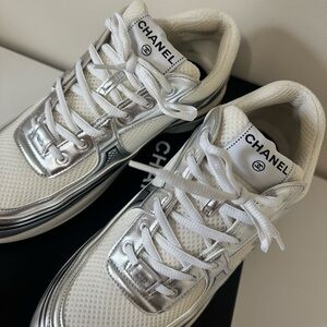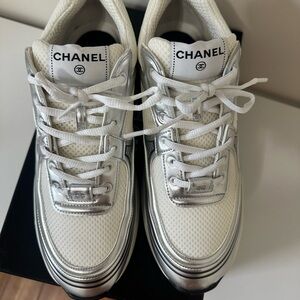 Chanel CC Logo Sneakers White & Silver 100% Authentic