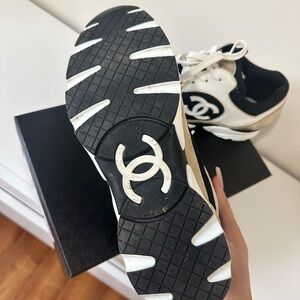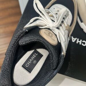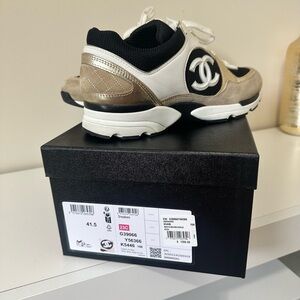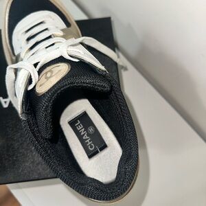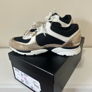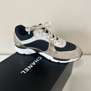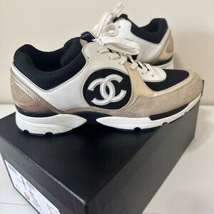 Chanel CC Logo Sneakers White, Black, Beige & Gold
