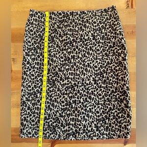 Gorgeous leopard print velour pencil skirt by Talbot’s. Women’s size 10, see photos for measurements. NWOT condition, absolutely no signs of wear. All over leopard print accompanies crushed velvet/velour texture! Fully lined. Features zipper with hook/eye closure at top. Small slit on back.
