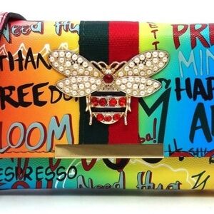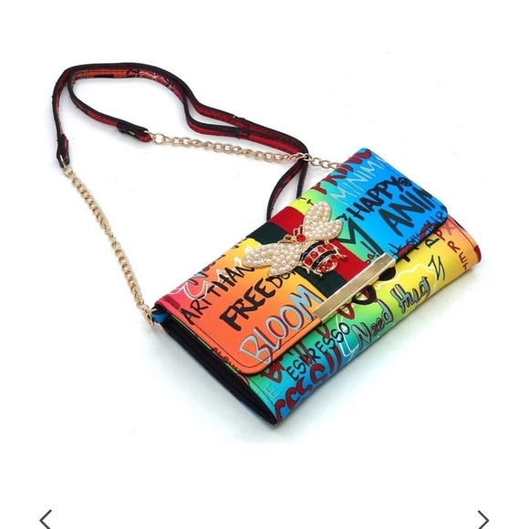 Queen Bee Stripe Graffiti Crossbody Wallet