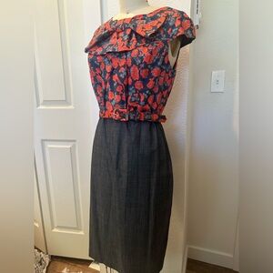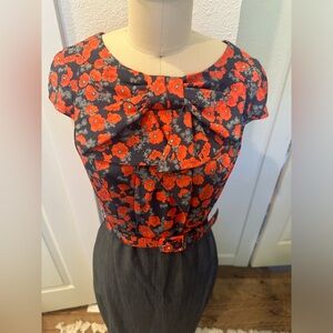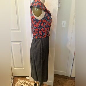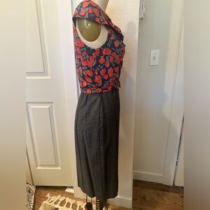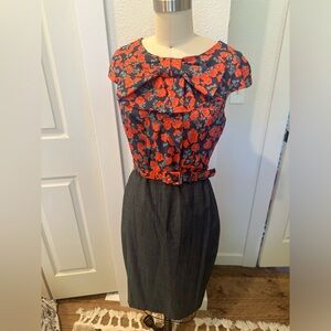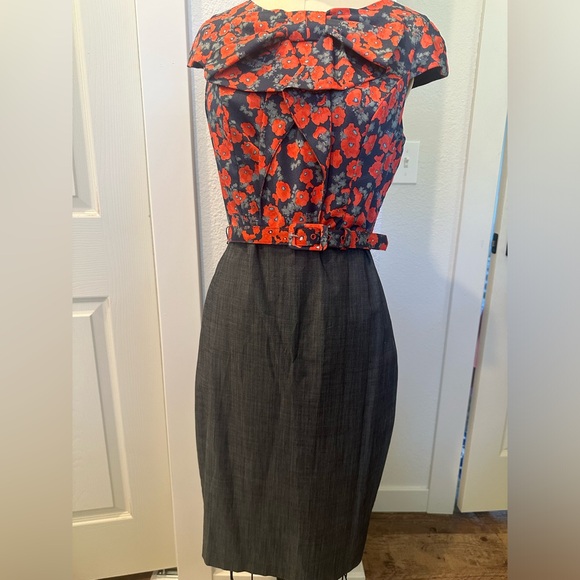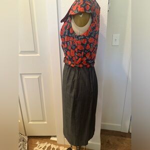 Eva Franco floral blouse and charcoal grey pencil skirt shirt dress. Comes with matching belt