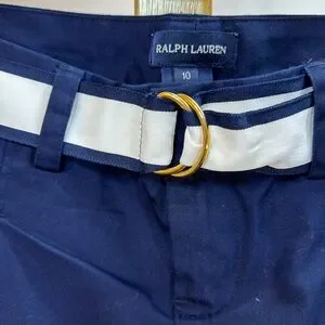 Navy Blue Ralph Lauren 100% Cotton Pleated Golf Shorts