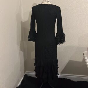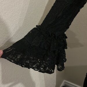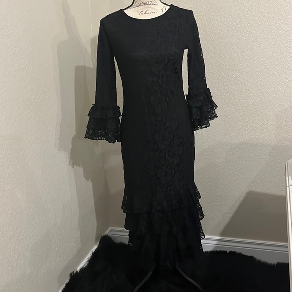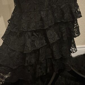 Super cute fancy Zadie B’s black lace straight dress with sleeve and bottom ruffles! No picks or any flaws! Wore a handful of times but NWOT. The size tag was ripped off accidentally but it’s a size small