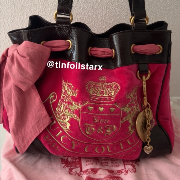 *Extremely rare and HTF* You won’t see one of these for sale anywhere! This beautiful hot pink vintage Juicy Couture daydreamer bag has NOT been dyed or altered in any way. The velour is a bright hot pink with golden iconic Scottie dogs on the front. She’s just as beautiful and vibrant in person! No visible flaws or peeling anywhere. Dust bag will be included.
