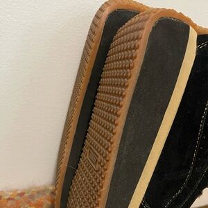 These are made with foam bottoms/rubber soles so they aren’t TOO heavy. The upper is made with genuine suede. They could benefit from a professional cleaning or an experienced DIYer.