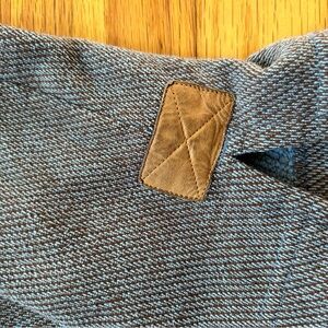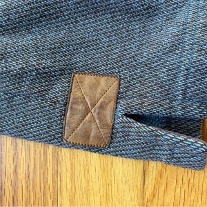 Some pilling around the tag, visible in photo. Elbow patches have minimal wear. Cleaned and washed before being shipped.