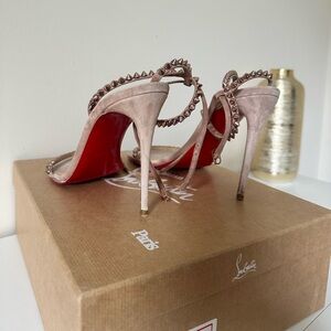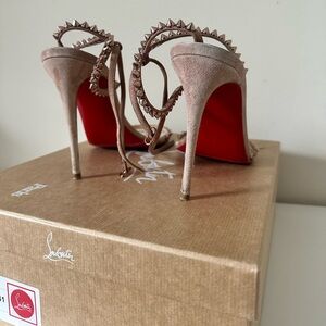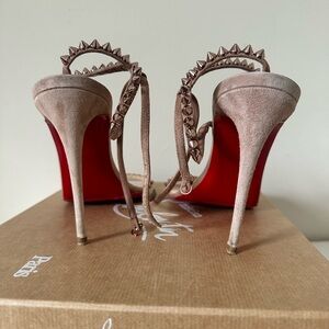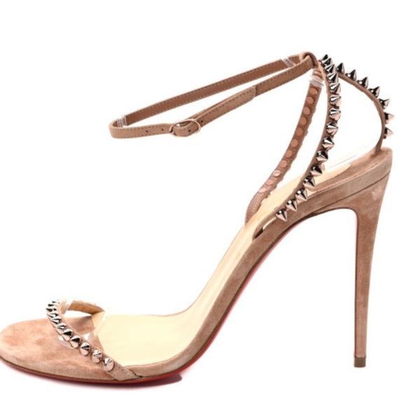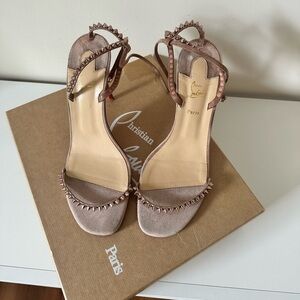“So Me” Beige Velour Christian Louboutin Sandal Heels