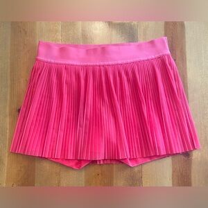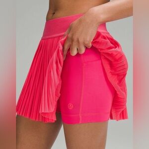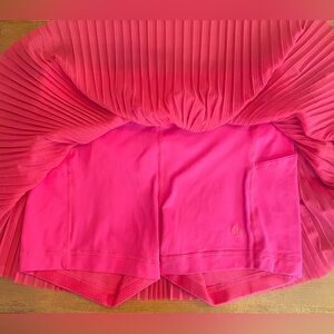 Mid-Rise Mini Tennis Skirt by Lululemon. Size: 10, see photos for measurements! Color: Lipgloss (Hot Pink). Absolutely stunning pre-owned condition: no stains, pulls, or other signs of wear. Tear tag is still attached! Gorgeous pleated mesh skirt with Luxtreme short underneath. Shorts features 2 pockets and lululemon branded grip at hem to prevent ride-up! Elastic waistband in excellent condition. So cute and comfortable!