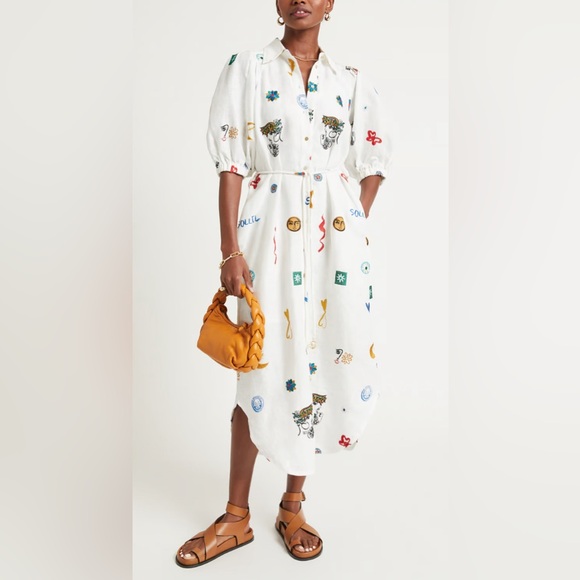 It’s the dress of your vacation dreams, and here’s why: the easy cut (with polished puff sleeves and an optional belt to cinch the silhouette), the linen fabric (both lightweight and breathable), and the detailed embroidery that takes a white dress from simple to simply adorable.