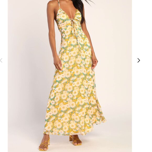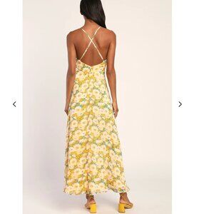 Lulus "Stun the Summer" Yellow Floral Print Backless Maxi Dress"