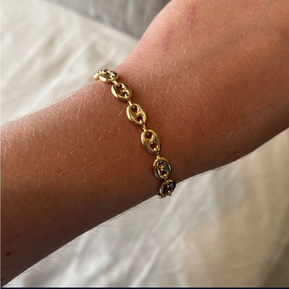 Very on trend right now! This beautiful bracelet is very light and made of stainless steel with 18k gold plating. Only worn a handful of times and in almost new condition. Will come with original jewelry bag. Reasonable offers welcome 😊