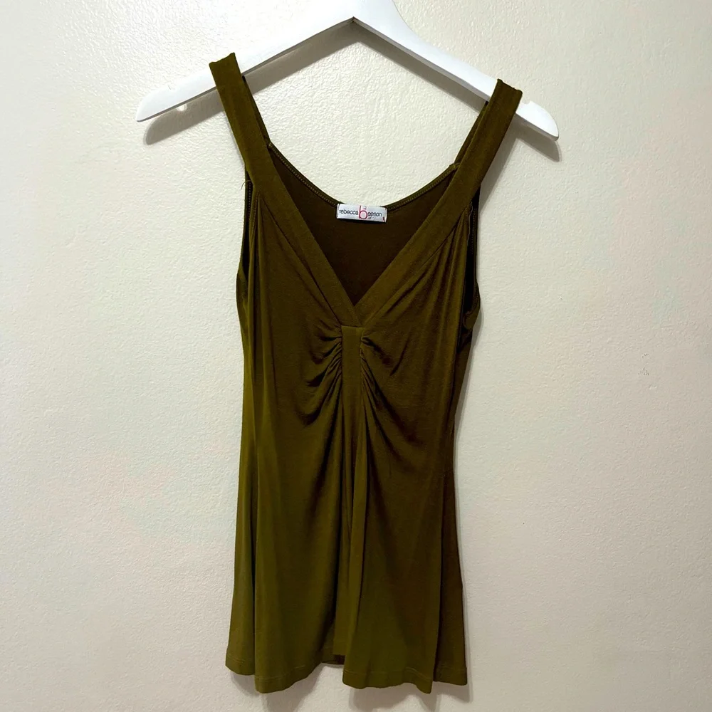 Olive green tank by Rebecca Beeson. Very sexy low V-Neck. Size 1 (small). Clearing out closets look for more gently worn items.