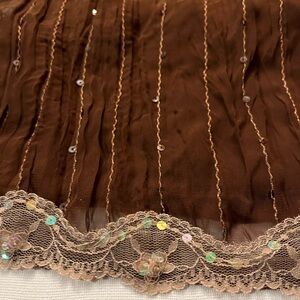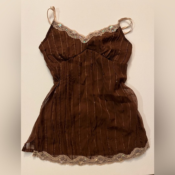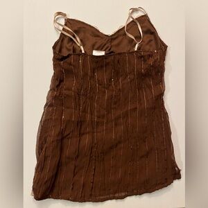 Y2K Chocolate Brown lace trim tank top w/ sparkly sequins and adjustable straps