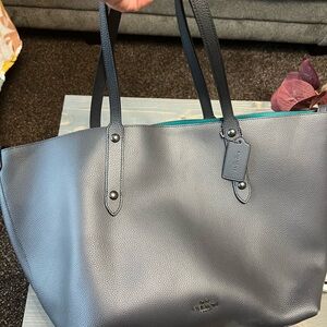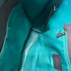 Like new coach tote ! Super cute in a charcal color with green in the inside