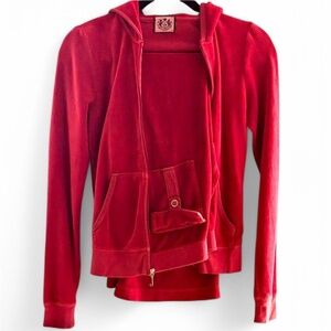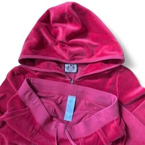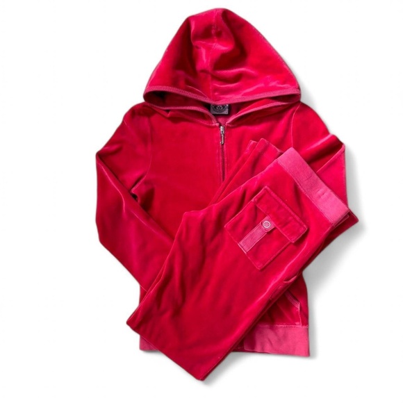 Vintage Y2K Made in America Juicy Couture Red Velour Tracksuit Snap Back Pockets