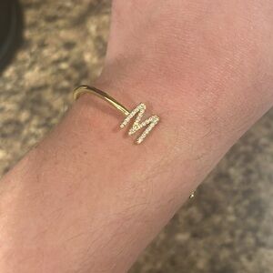 Brand new, never worn! Super cute and dainty 18k gold plated brass M initial cuff bracelet. One end has an M with super sparkly CZ’s and the other end is a round sparkly CZ solitaire. Reasonable offers welcome 🤗
