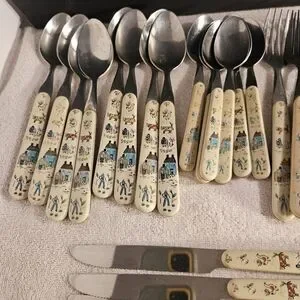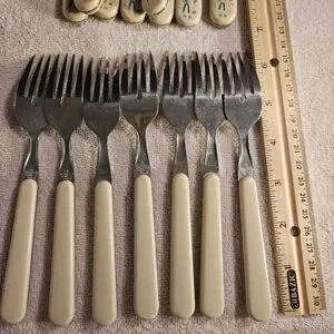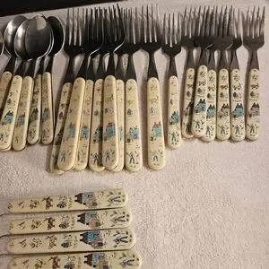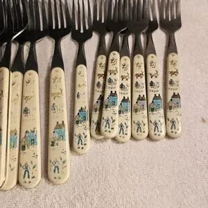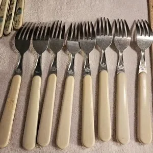 Some silverware have some wear.