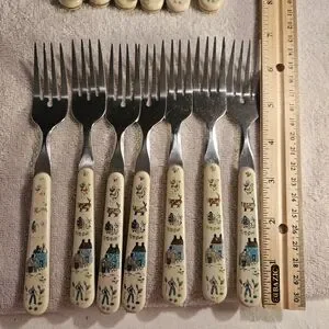 7 salad forks made in Taiwan and 6 5/8 inches long.
