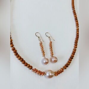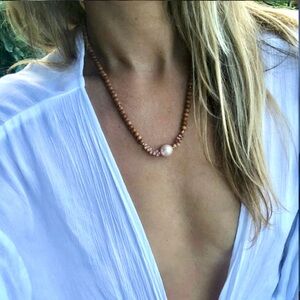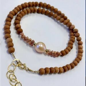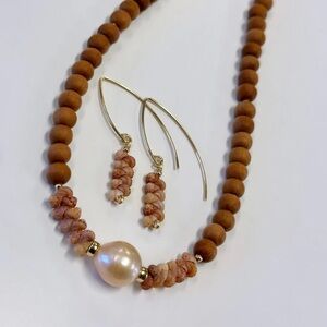 Edison pearl sandalwood beads kahelelani shells Hawaiian necklace