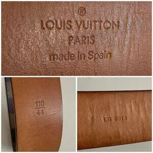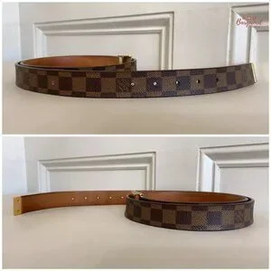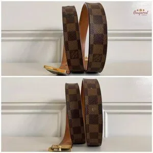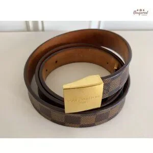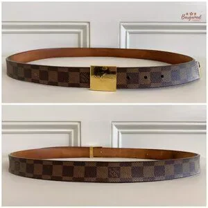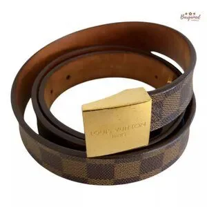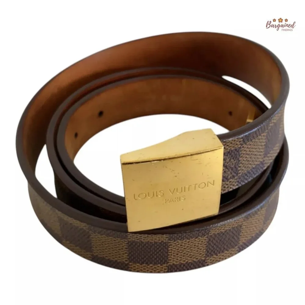 Authentic Louis Vuitton Damier Ebene Coated Canvas Leather Ceinture Carre Gold Buckle Belt 110/44