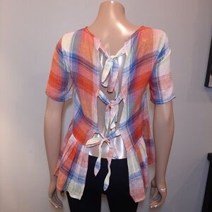 Features: Semi-sheer, soft cotton mesh with a linen look, tie back allows an adjustable fit