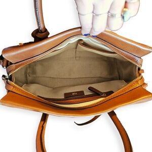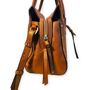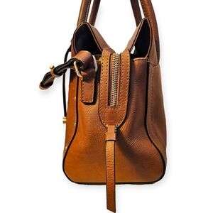 Small bag; approximately 11" wide, 8" high x 5" deep (width is measured across the bottom of handbag)