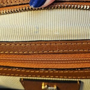 Minor wear includes strap seam sealant missing in one small area, one small ink smudge on interior, scratch on bottom panel (all pictured.)